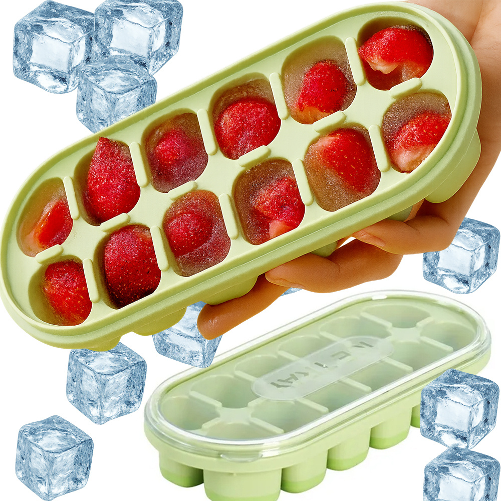 Easy Release Ice Cube Tray with Lid and Silicone Bottom, 12 Cubes