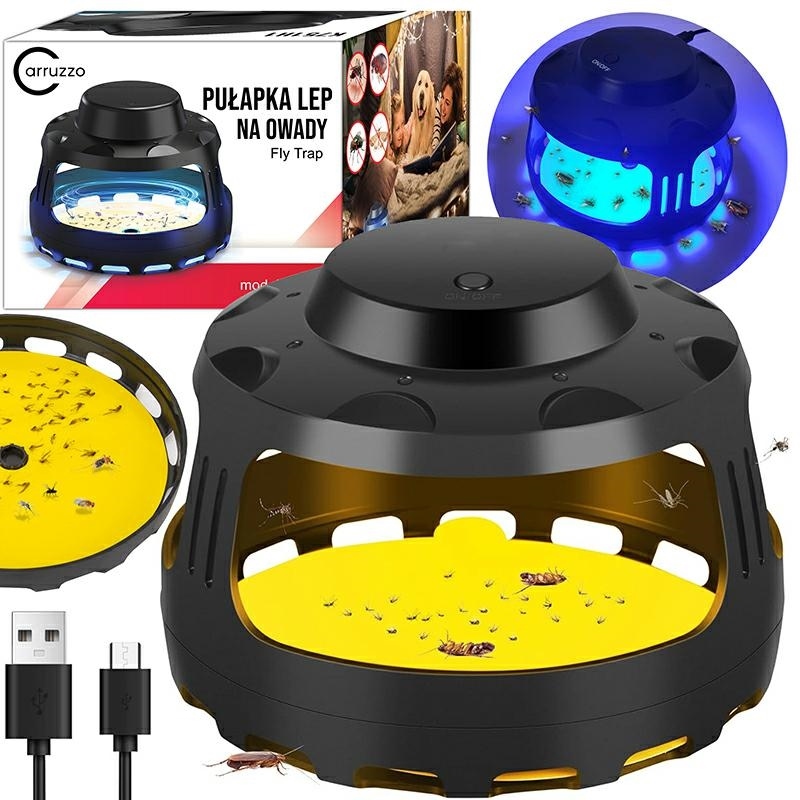 - What's Included: The package contains the insect trap, a USB cable, and 5 replacement adhesive discs.