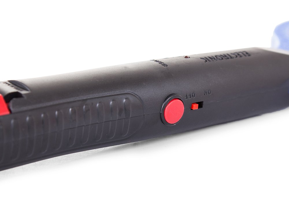 Turns on by moving the switch to the ON position and briefly holding the button on the side of the handle.