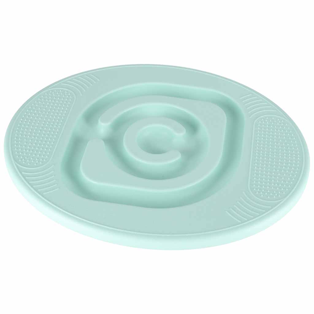 The balance board is made from durable, mint-coloured plastic and supports a maximum load of 90 kg, guaranteeing long-lasting fun even during the most intense activities. The maze in the centre is an engaging addition that further captivates a child's attention. By balancing on the board, the goal is to guide the wooden balls to the centre of the maze. The textured bumps on the surface stimulate the sense of touch and provide a secure, non-slip grip.