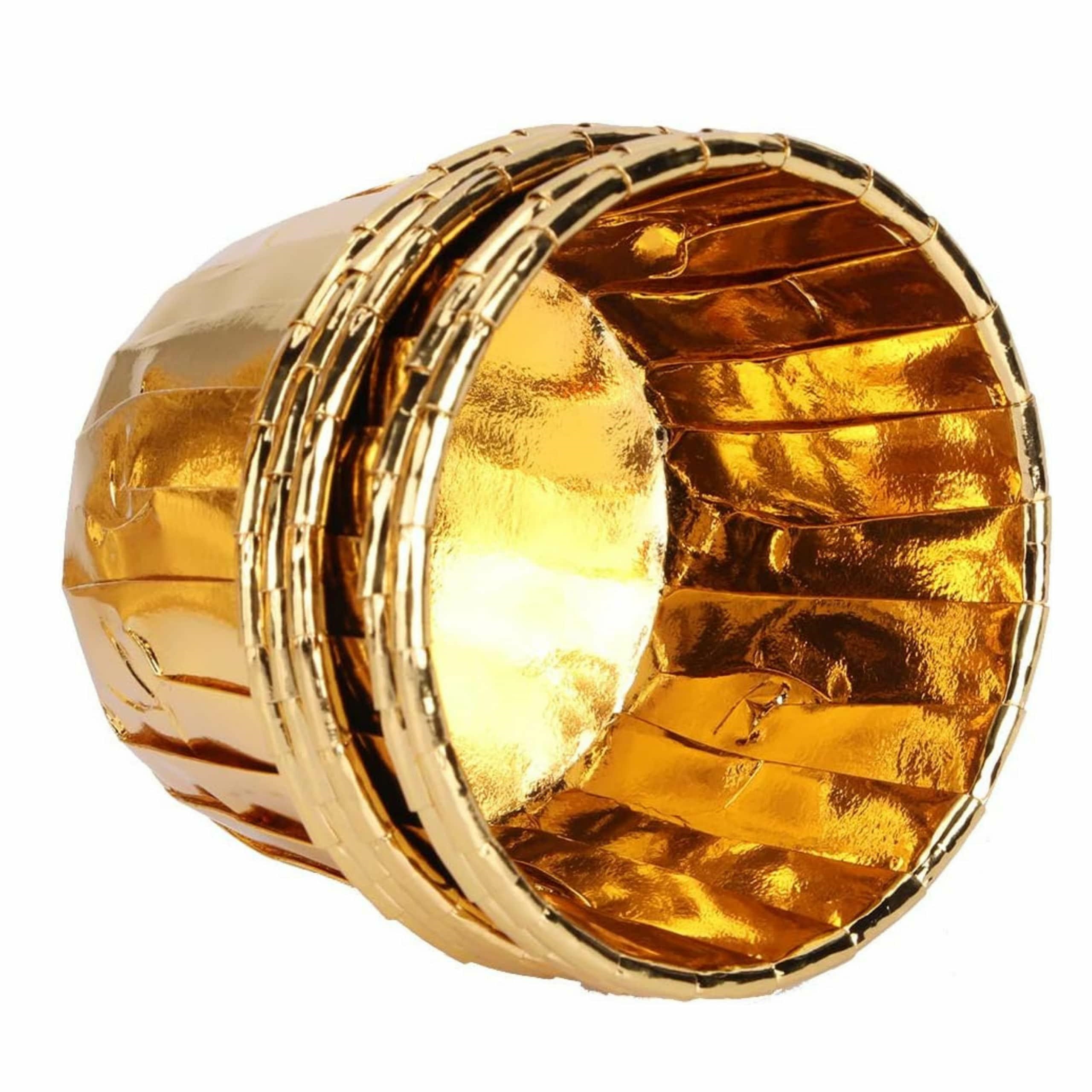 These gold cupcake liners are not just for cupcakes. Use them for holding small candies, nuts, or other party snacks. Their sturdy construction and elegant appearance make them a versatile addition to your kitchen and party supplies. They are ideal for birthdays, holidays, bake sales, and professional catering.