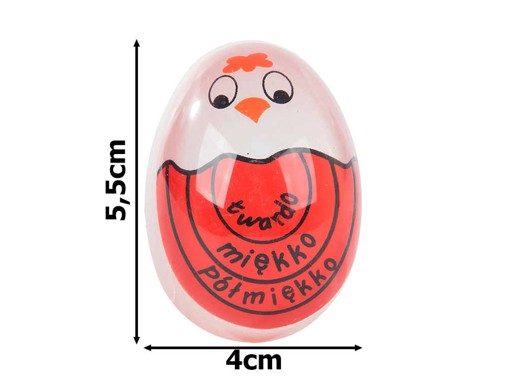 The principle is very simple. The red colour slowly fades to the centre and a white colour develops on the sides, like the white of an egg. The longer the eggs are cooked, the more white colour will appear on the timer which means that the eggs are curdling more.