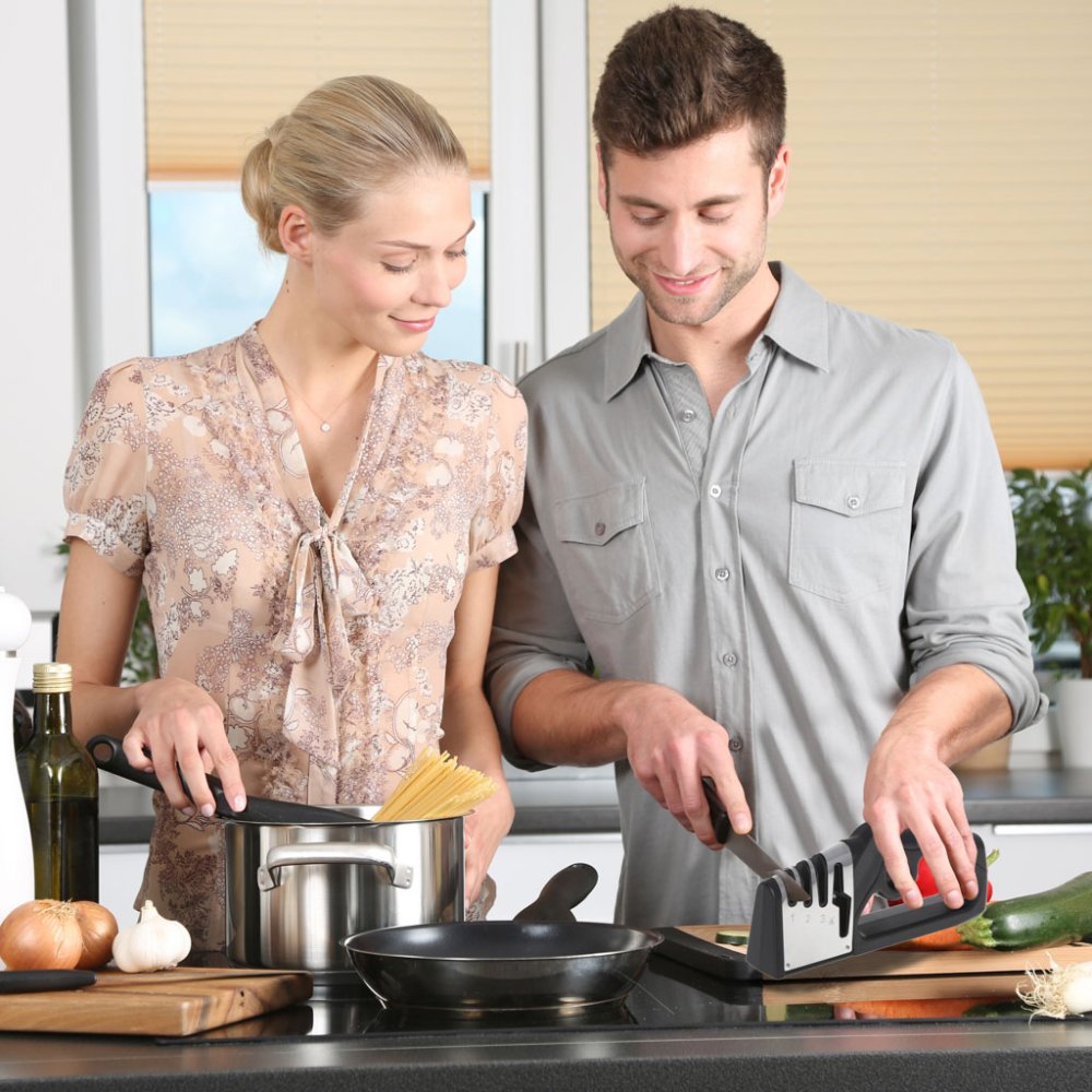 The three stages of knife sharpening: pre-sharpening, fine smoothing and polishing, will prepare your blades like in a professional kitchen.