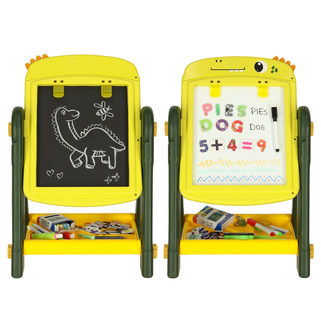 Double-sided Magnetic Dry Erase Board for Kids with Chalk, Dinosaur Design