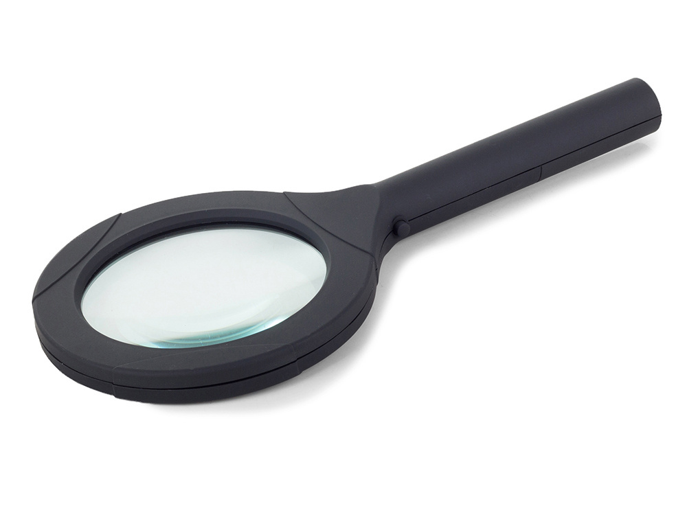 A professional handheld magnifier with 3x magnification and built-in SMD LEDs for comfortable reading and viewing fine details.