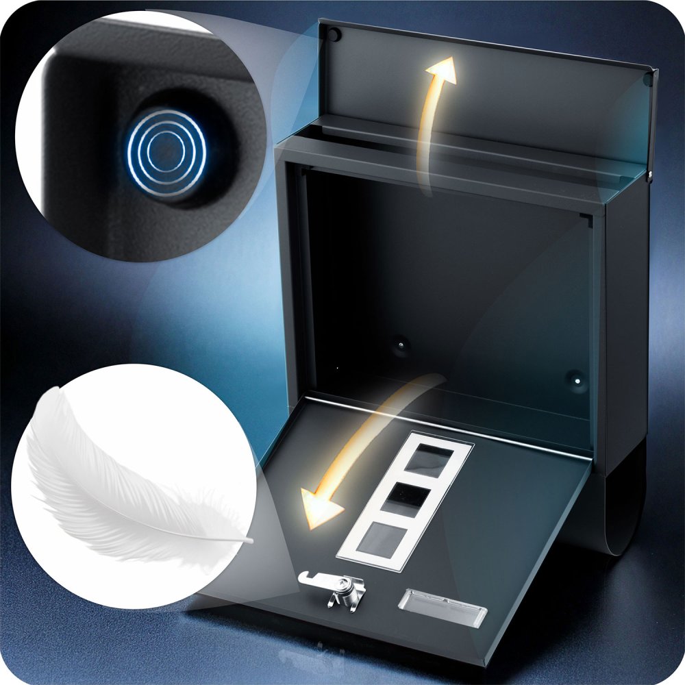 This modern wall mounted mailbox in a sleek anthracite finish is the perfect addition to your home. It not only keeps your correspondence secure but also enhances your property's curb appeal with its stylish and elegant design.