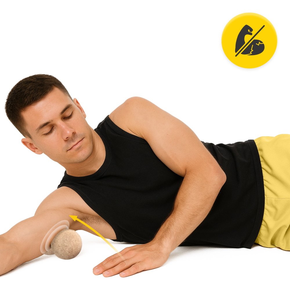 You can use it for static trigger point release (pressing the ball against the sore spot) or for deep self-massage by slowly rolling it along the tense muscles.