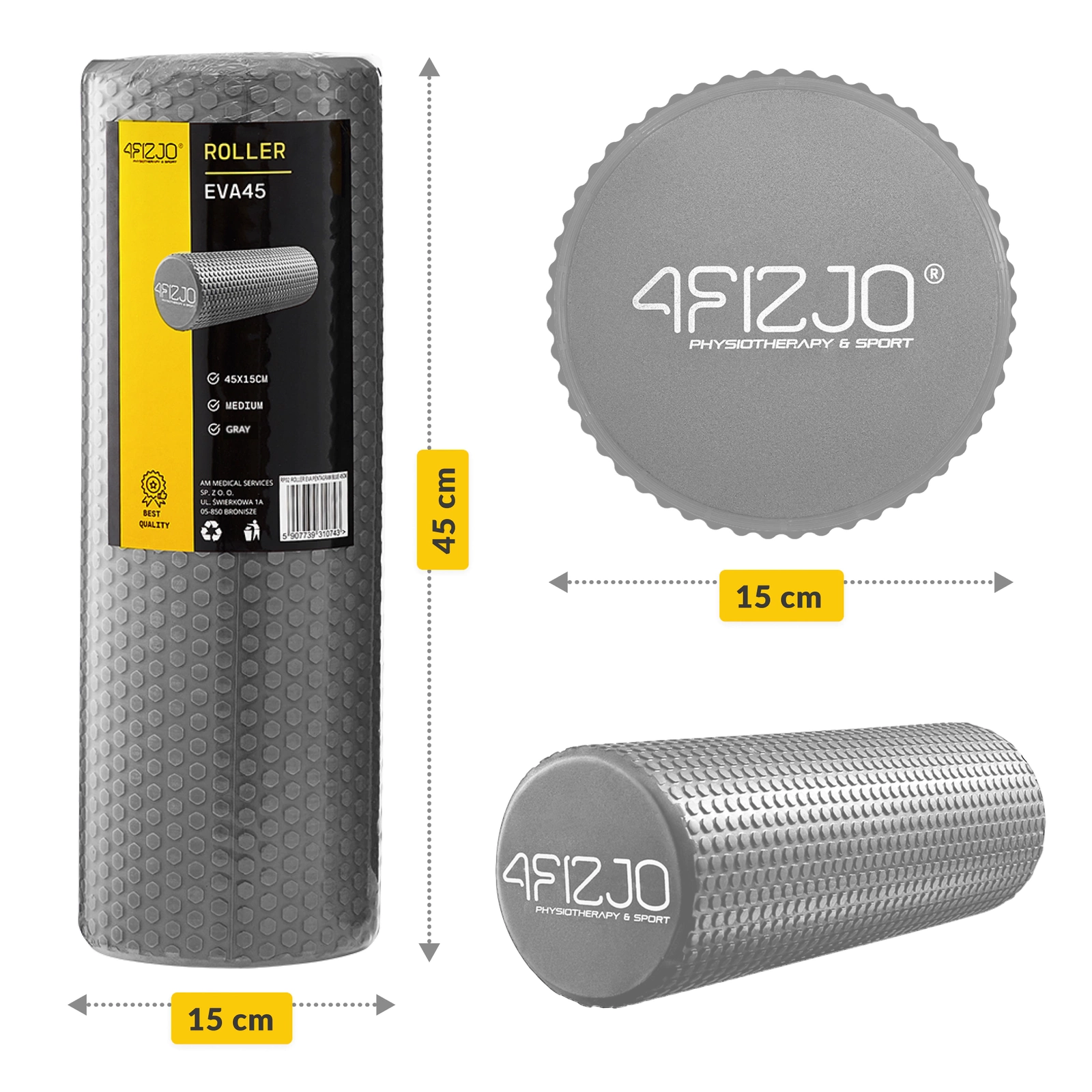 4Fizjo CARE+ Massage Roller with Bumps, 45 cm, Grey