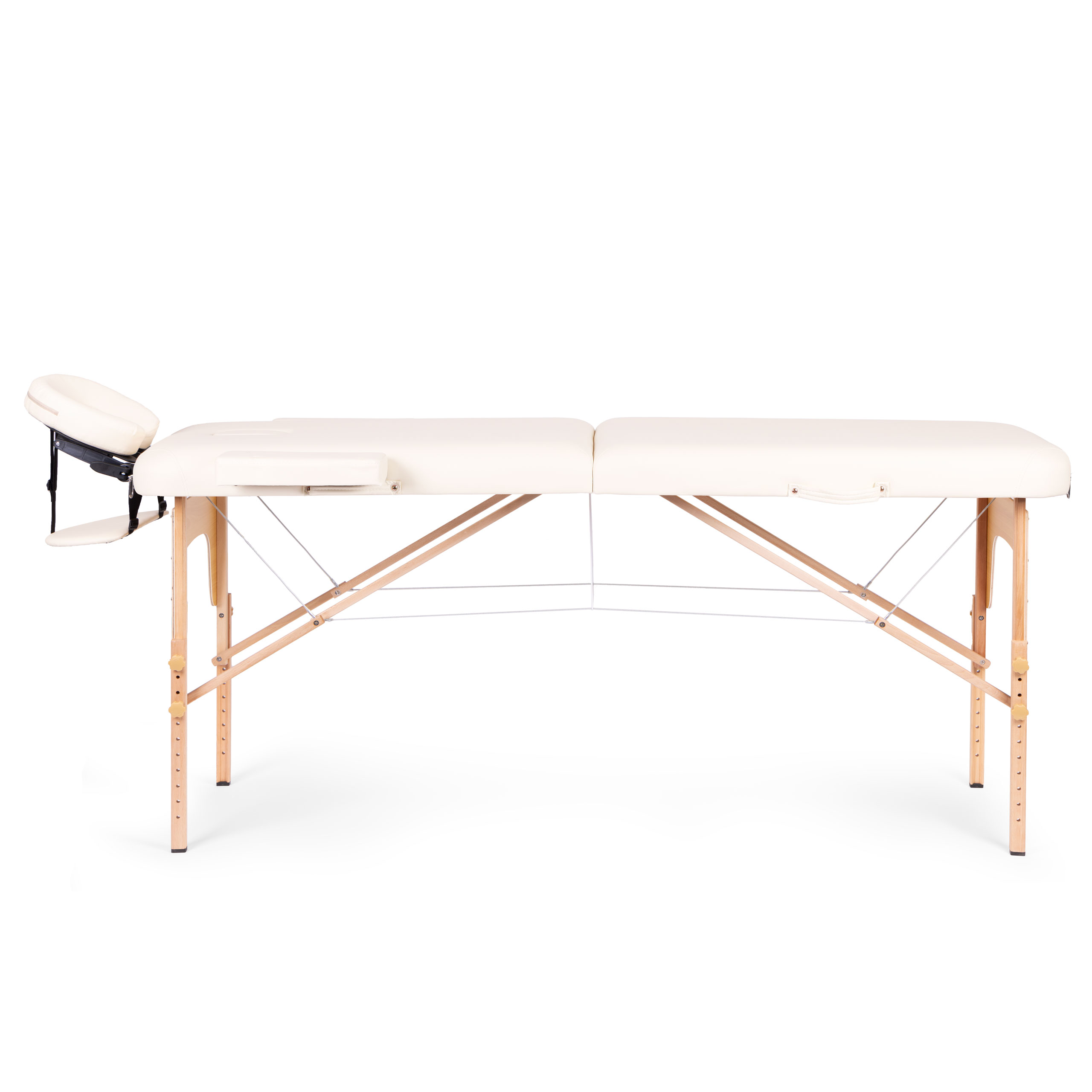 A special system of locking knobs allows you to precisely adjust the table's height to suit the therapist's needs, ensuring an ergonomic working posture. Durable steel support cables connect the table legs, effectively reinforcing the entire structure for greater rigidity and stability.