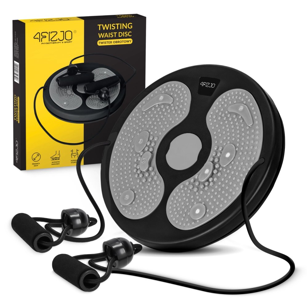 The 4Fizjo Mini rotary twister board with resistance bands is a compact fitness tool designed for training the waist, core, and arms.