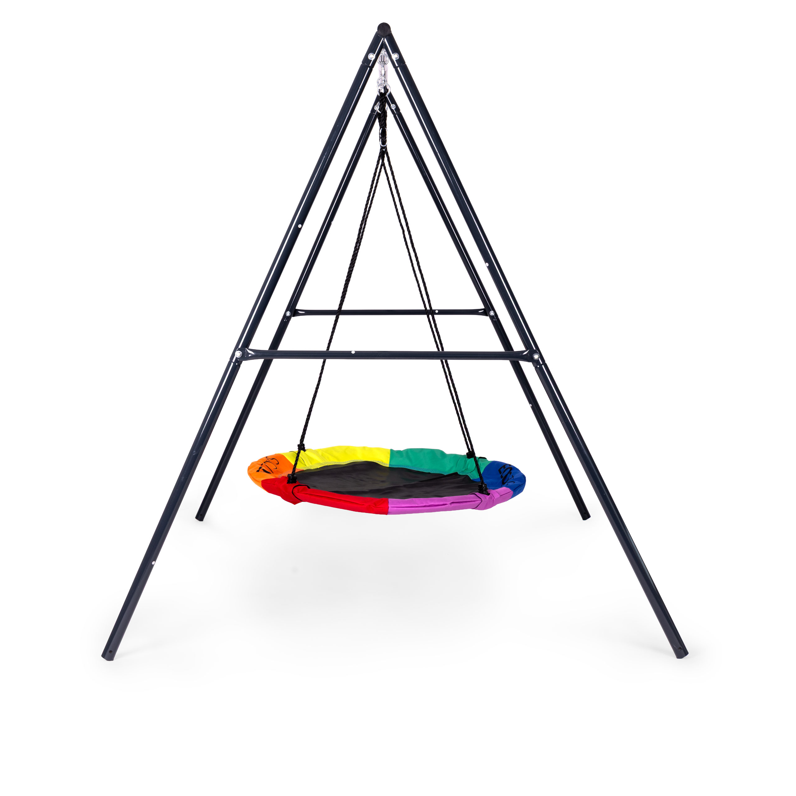 The spacious 100 cm nest swing provides a large, comfortable surface for sitting or lying down. Its robust construction easily accommodates up to two children at once, with a maximum load capacity of 150 kg. The seat frame is protected by soft foam, and the rope attachment points feature special collars to eliminate sharp edges, ensuring maximum safety during playtime.