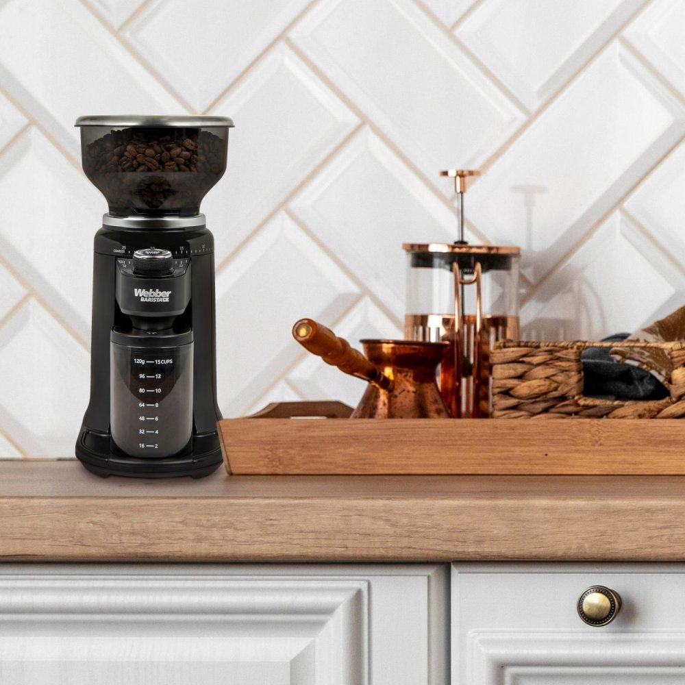 The Webber CG6 electric coffee grinder is the perfect solution for lovers of freshly ground coffee. It provides precise grinding for various brewing methods, thanks to its 25 grind settings and steel conical burrs.