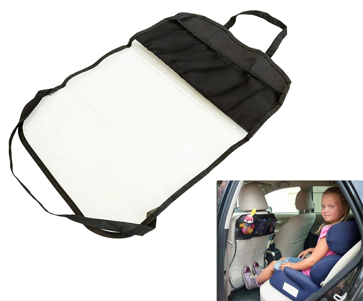Car seat back organizer and protector, transparent + black