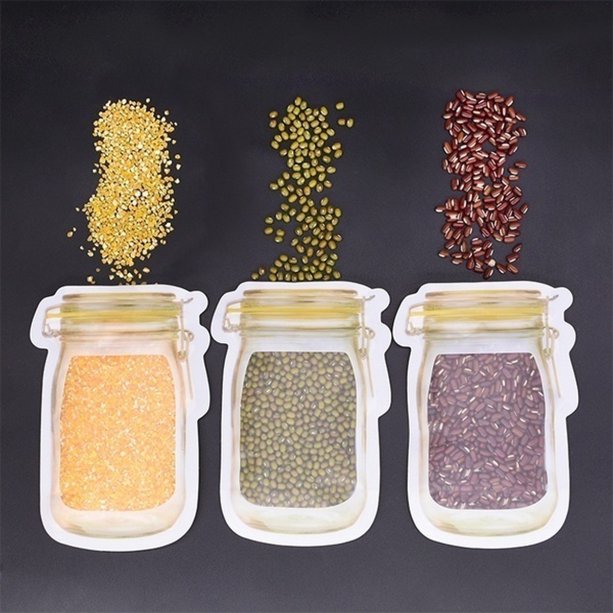 Set of 20 string pouches for safe food storage. Original shape with jar print. Includes up to 4 different sizes packing smaller and larger portions.