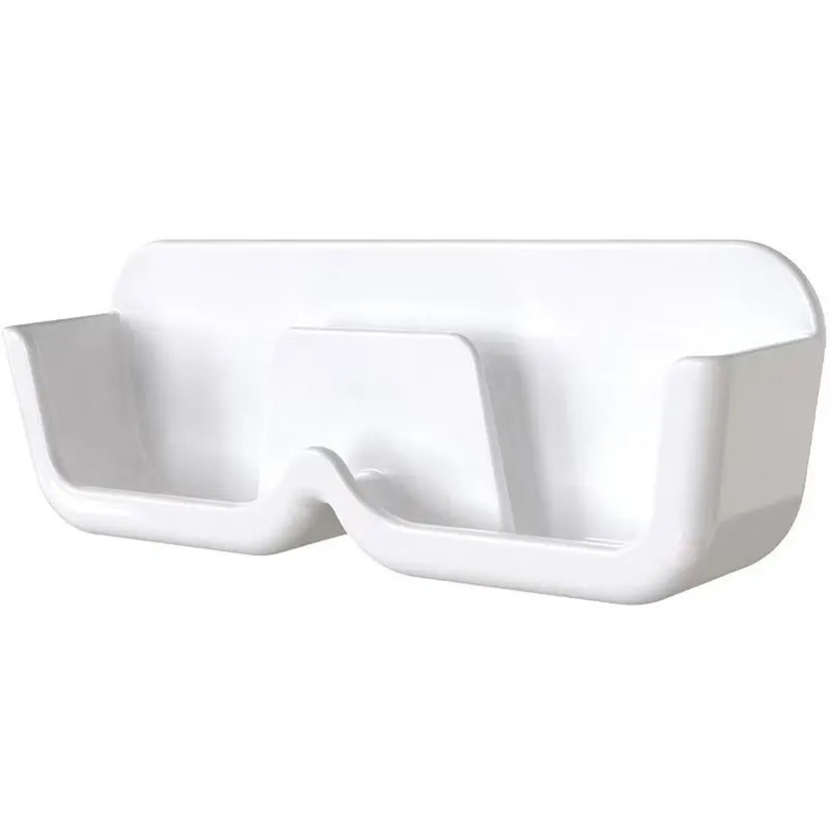 Self-adhesive wall organizer for storing eyeglasses. The perfect solution keeping eyeglasses securely in place. Вesign is made of strong moisture-resistant plastic. Non-invasive mounting with adhesive tape on the back.
