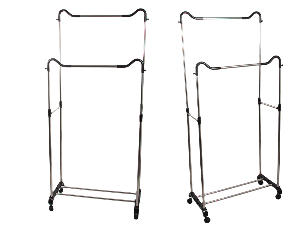 The rack on wheels is a practical and mobile solution for storing clothes. Thanks to its sturdy construction, it provides great stability and strength, and the double hanger allows you to conveniently hang different types of clothes, such as coats, jackets or shirts.
