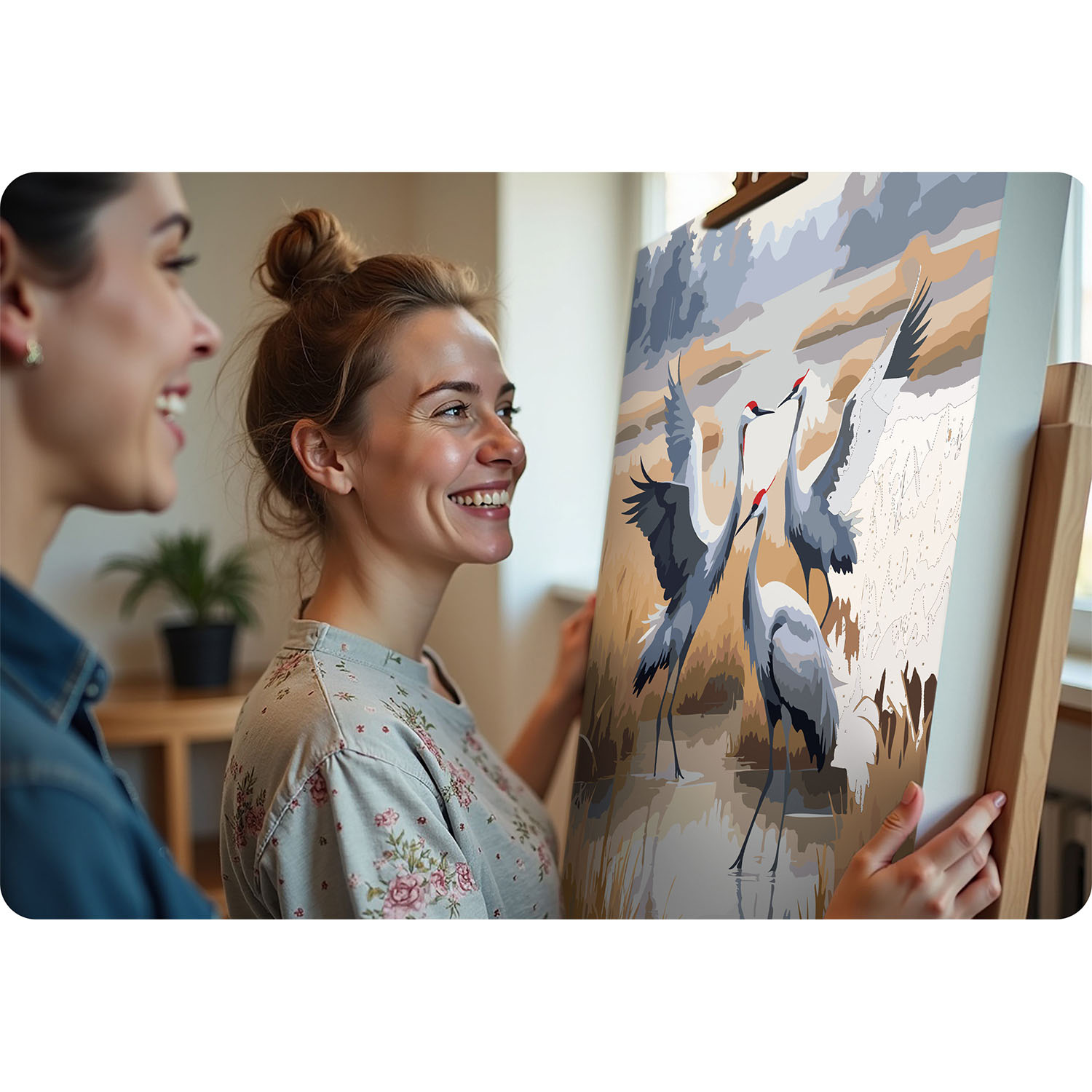The Massido paint by numbers kit with a cranes motif is a great way to unleash your creativity. The set includes a 40x50 cm canvas on a stretcher frame, ready to be painted and displayed on your wall.