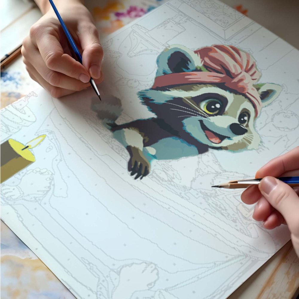 Discover the joy of creating with this Massido paint by numbers kit. It's the perfect choice for artists and creative enthusiasts alike, allowing you to easily create a beautiful painting featuring a charming raccoon.