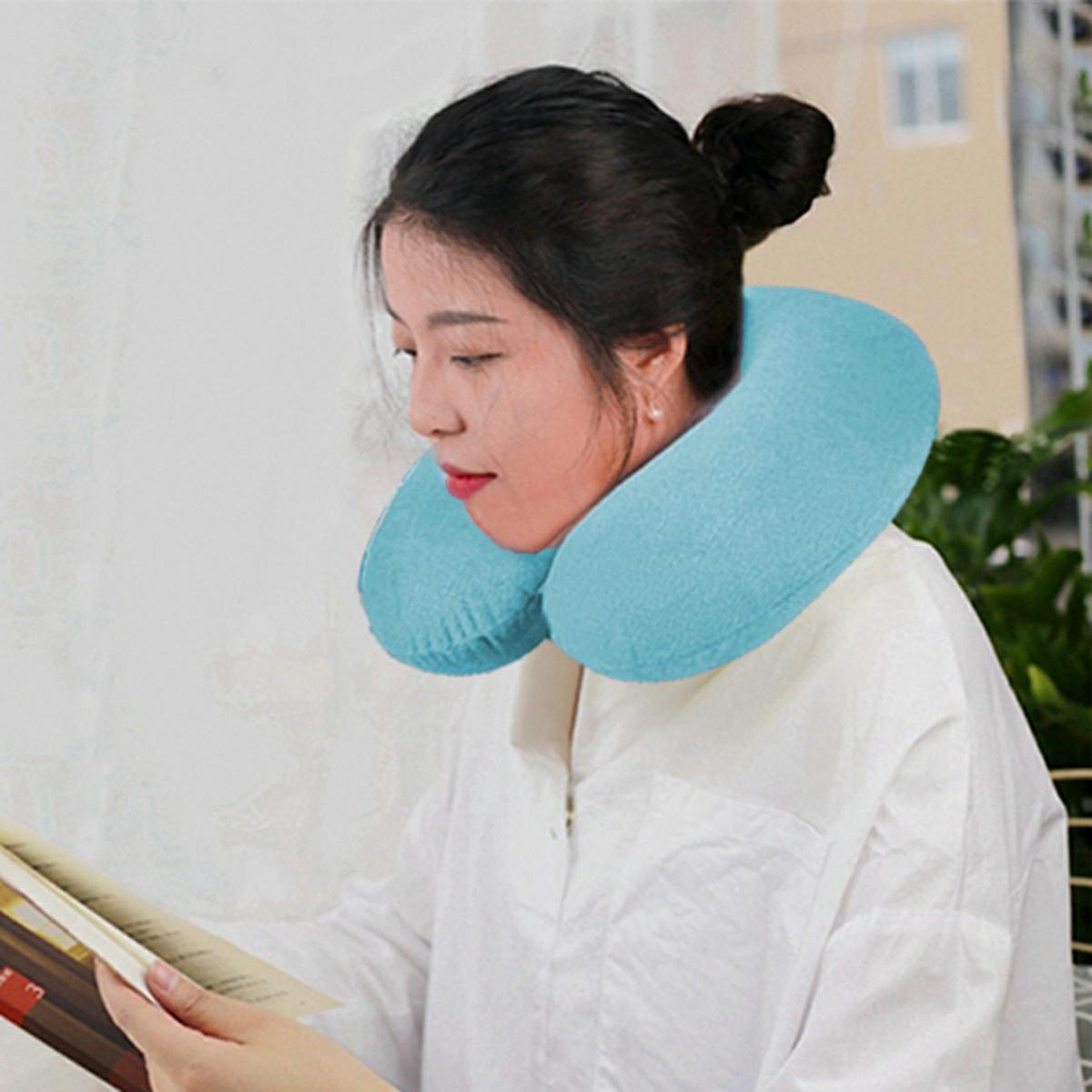 Blue memory travel pillow