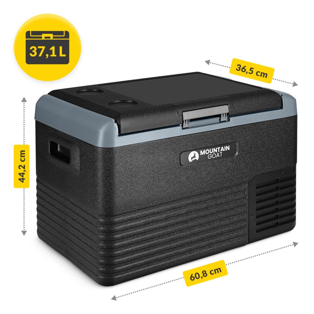 The 4Fizjo Liberty Mountain Goat is a portable compressor fridge with a 37.1-liter capacity, designed for cooling and freezing food and drinks during travel, camping, and outdoor trips.