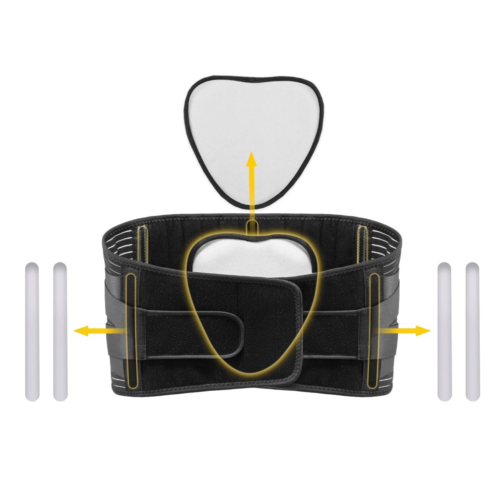 - Stabilization: 5 flexible stays adapt to the natural curve of the spine.