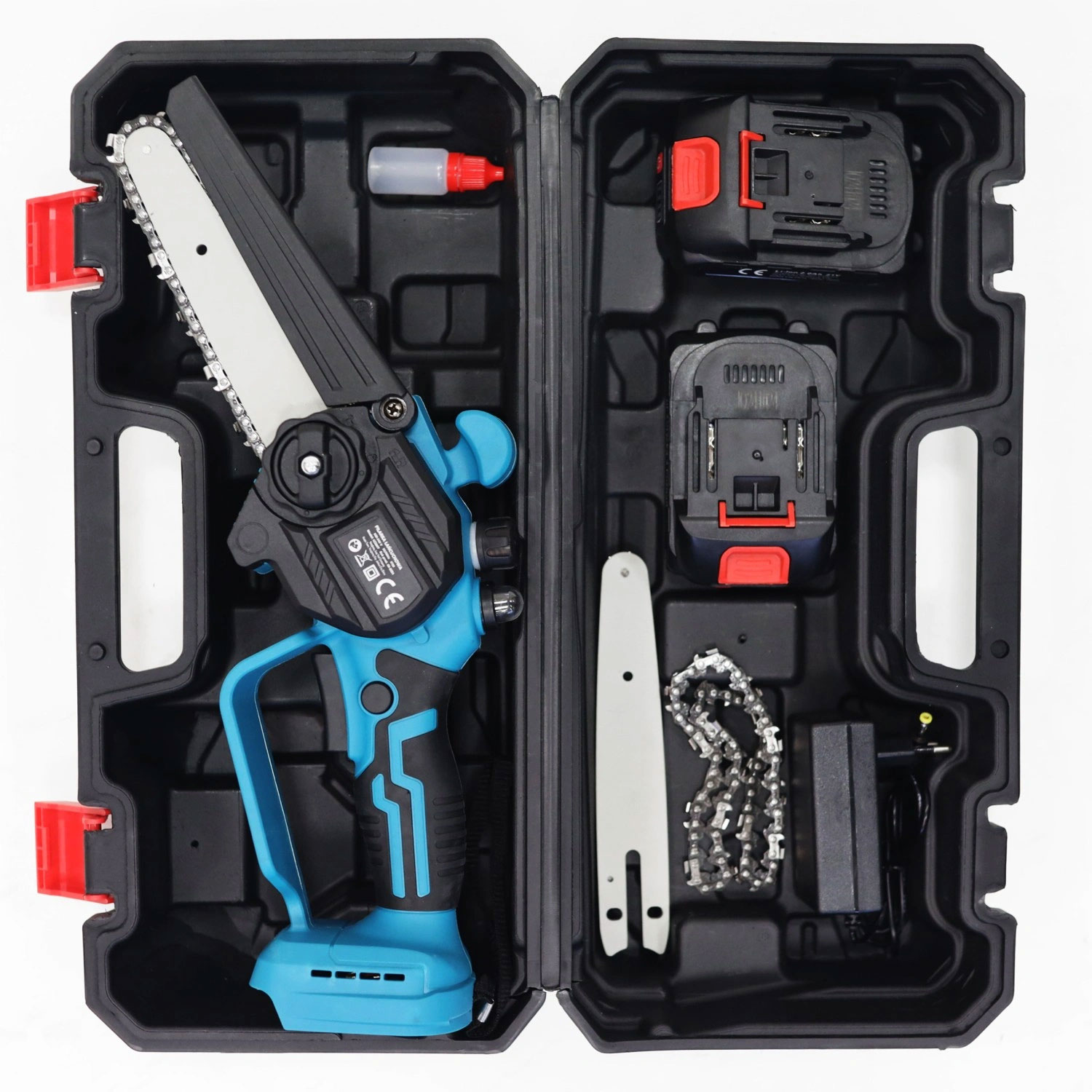 The chainsaw comes packed in a durable carrying case that ensures safe storage and easy transportation. The set includes: