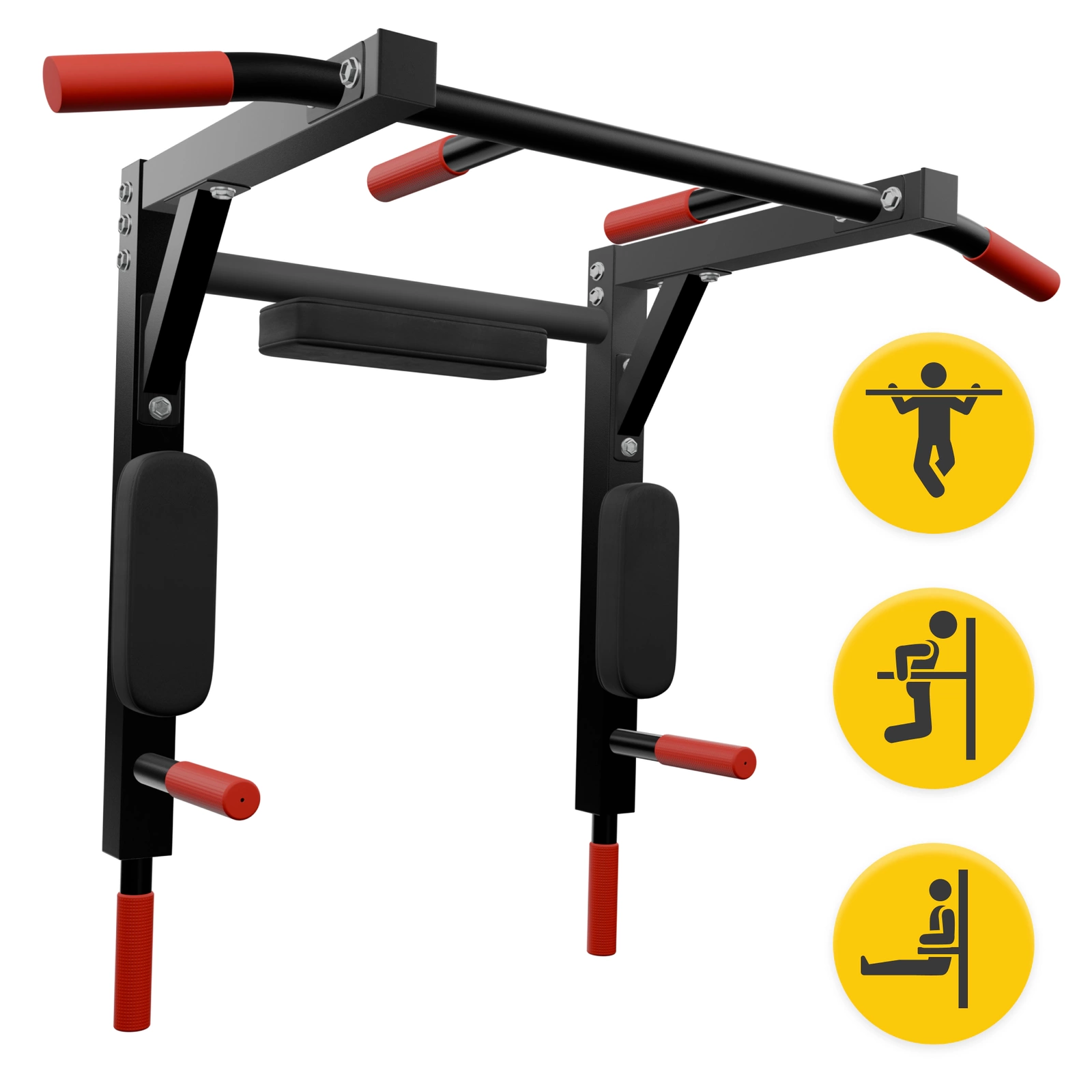 This wall-mounted pull-up bar is an ideal choice not only for experienced individuals looking to build upper body muscle but also for beginners starting their fitness journey. This multifunctional station is a fantastic tool to quickly strengthen your back, arms, chest, and abs, and effectively build muscle mass as you progress.
