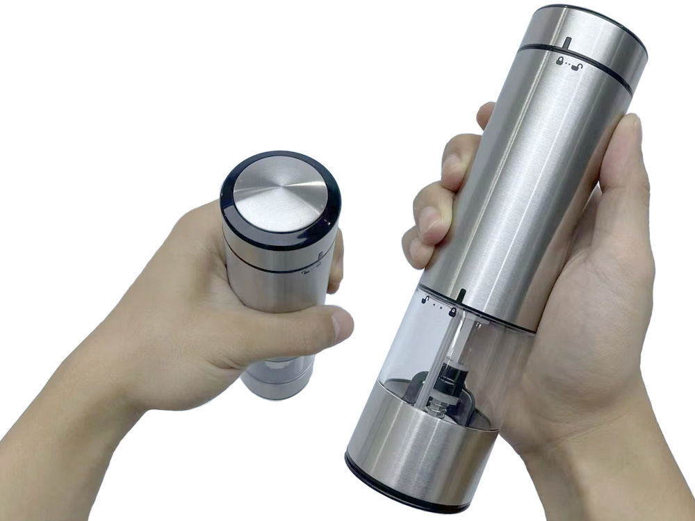 The electric grinder for salt, pepper, and other spices is a modern and practical helper in any kitchen. The device is equipped with an LED light and adjustable grinding coarseness.