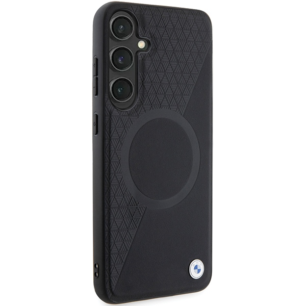 BMW Samsung Galaxy S24 Case Leather Half Textured & Circle MagSafe, Black
