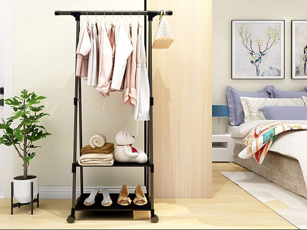 In the bedroom, a clothes rack is the perfect solution to help keep things tidy. You can store your everyday clothes on it and place shoes, handbags or boxes of accessories on the shelves. This way, everything will have its place and you will gain more space in your wardrobe.