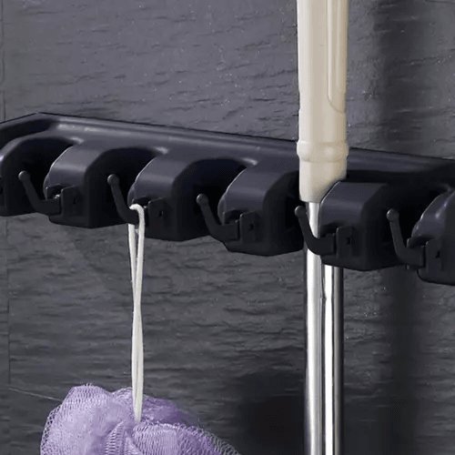 Wall-mounted Hanger House Cleaning Tool (mop, broom) Holder / Garden Tool Storage / Garage Organizer, Black