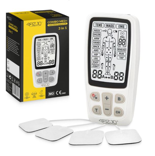 The 4Fizjo 965 Combo MED+ is a multifunctional wireless electrostimulator that combines TENS, EMS, and massage functions. It is designed for muscle and nerve stimulation, helping to reduce pain, improve blood circulation, and promote muscle recovery at home.