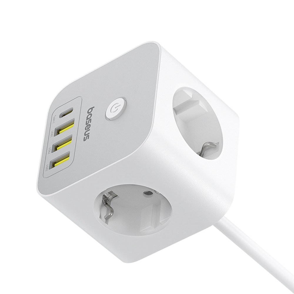 Baseus PowerCombo 7 in 1 Power Strip Cube, 3 AC + 3 x USB-A + 1 x USB-C, 20W, 1.5m, White