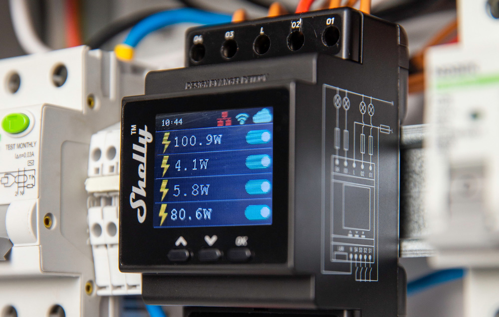 The Shelly Pro 4PM is a professional 4-channel relay designed for mounting on a standard DIN rail in a switchboard, providing advanced automation and energy monitoring for any building.
