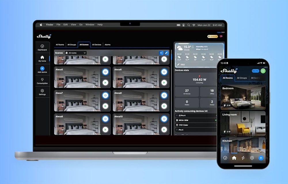 Upgrade your home with the Shelly Shutter and BLU Button Tough 1 smart controller kit. This compact WiFi device fits behind standard switches, offering seamless control of blinds, curtains, and awnings while monitoring energy usage.