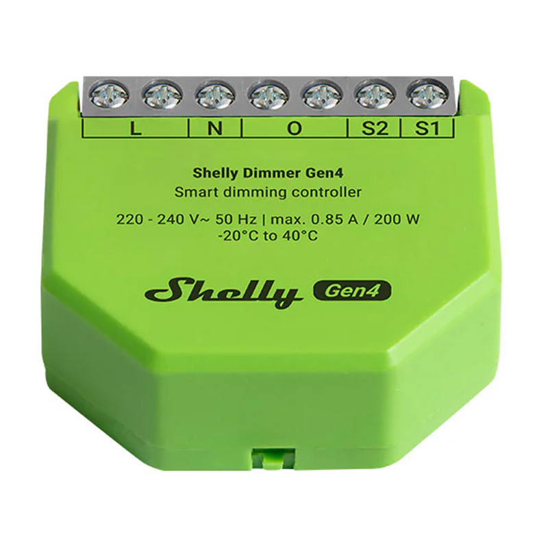 Upgrade your home lighting with the Shelly Dimmer Gen4, offering precise control and broad compatibility. This compact smart controller seamlessly integrates into your existing setup without requiring a neutral wire, supporting Wi-Fi, Bluetooth, Zigbee, and Matter for ultimate flexibility.