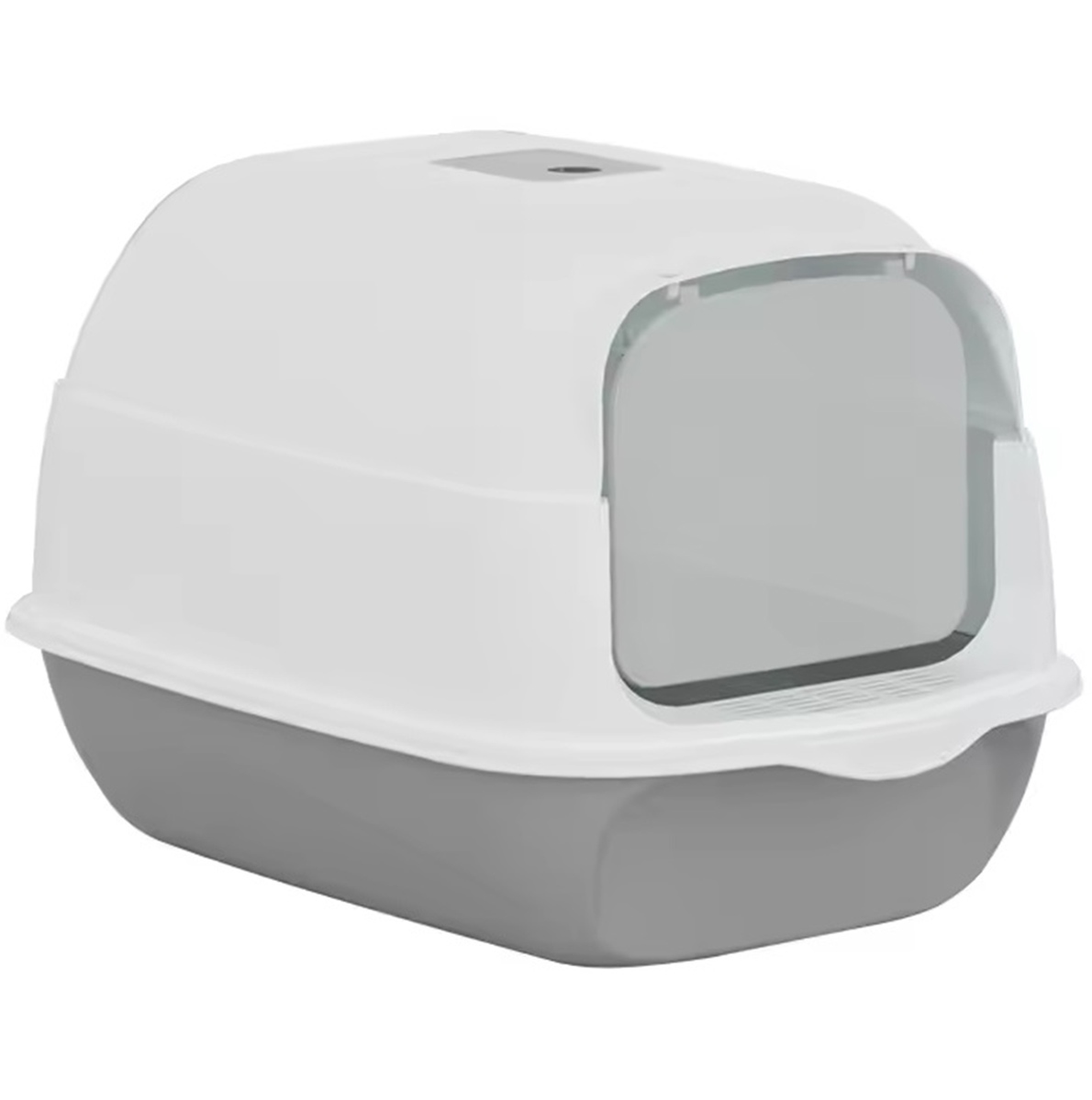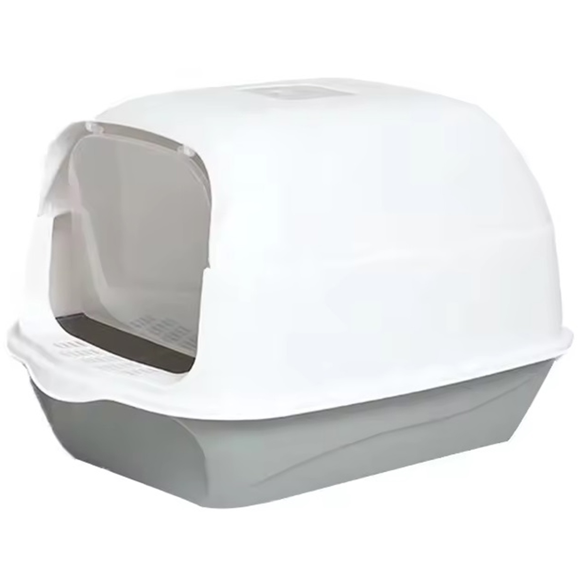 A large, enclosed cat litter box featuring an innovative flip-top base, providing an excellent solution for both cat owners and their feline companions.