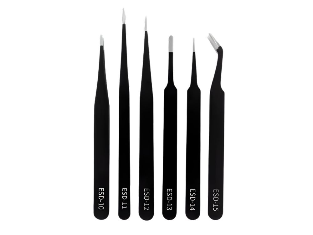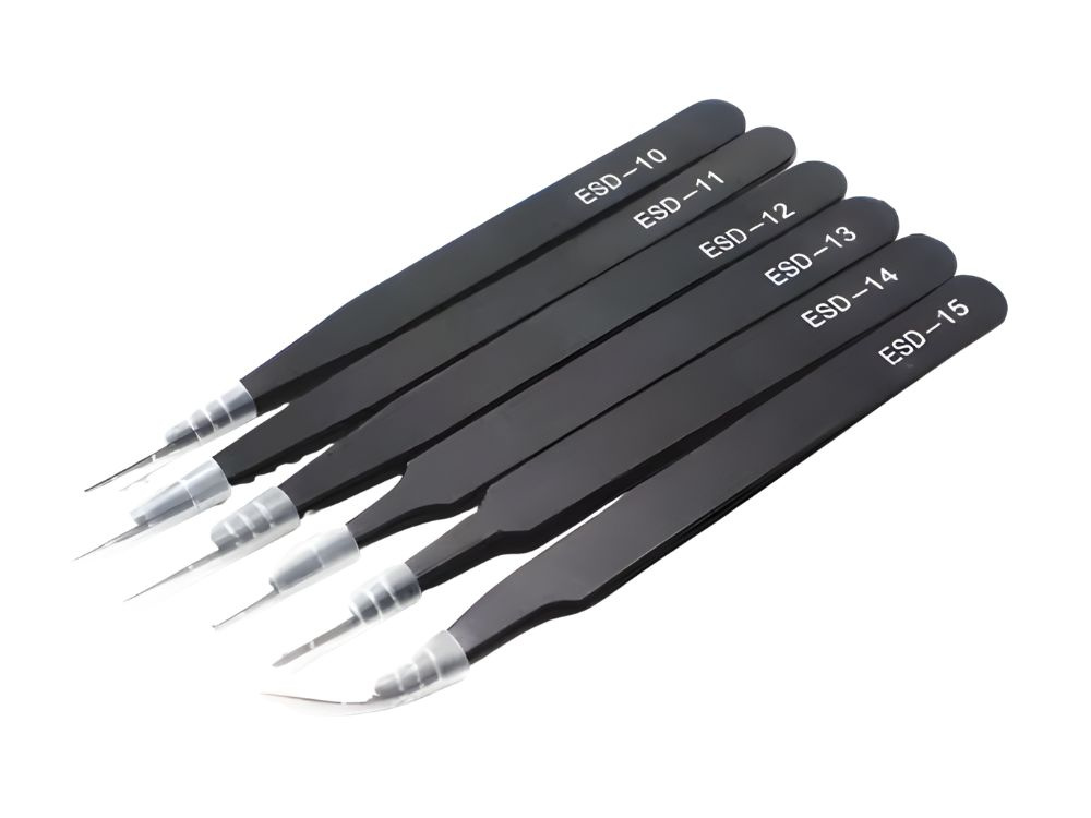 Upgrade your toolkit with this 6-piece precision anti-static tweezers set. Designed for professionals and hobbyists alike, these tweezers are perfect for handling tiny components with absolute control. Whether you are working on electronics repair, SMD soldering, jewelry making, or intricate modeling, this versatile set provides the exact tool you need for the job.