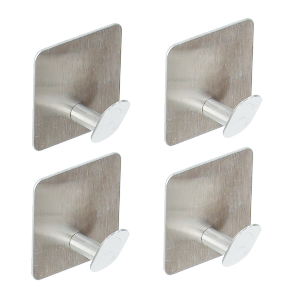 Ex-Display Self-Adhesive Wall Hooks, Stainless Steel Set of 4, Silver