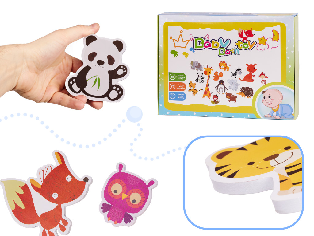 This set is a great way to make bathing exciting for children who don't like to wash. The foam animals float on the water and, when wet, easily stick to the edges of the bathtub or tiles, allowing the child to create their own water zoo while developing creativity and fine motor skills.