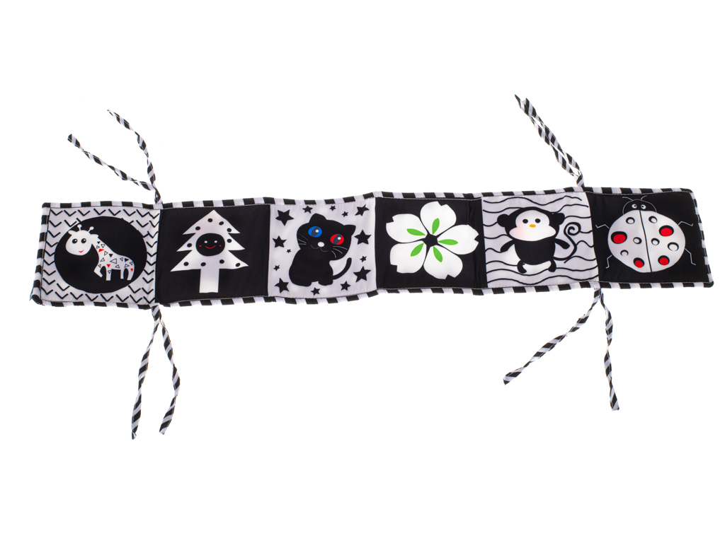 A magic book made of fabric with contrasting patterns is a great gift for children who are just getting to know the world. The book is perfect as a protective rug for the crib.