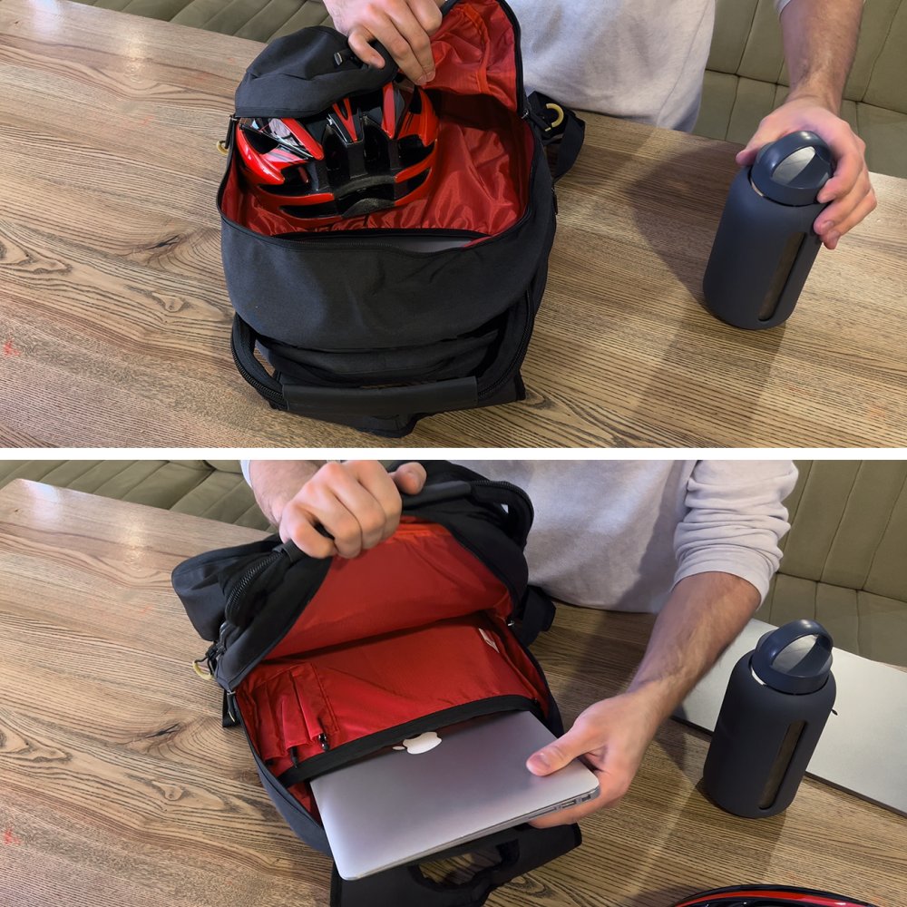 - You can also wear it on your back . The double bicycle bag turns into a comfortable backpack in one move
