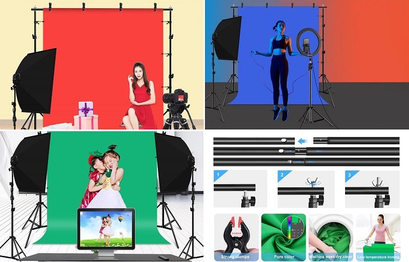 The clips ensure a firm grip and prevent the background from falling.