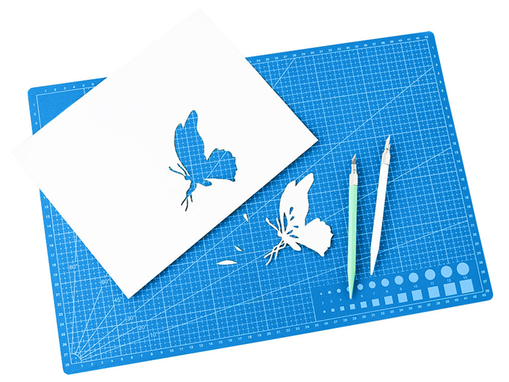 The double-sided self-healing cutting mat is made of a special material that partially closes after being cut, keeping the surface smooth. It is an indispensable tool for modeling, crafting, and other precision work.