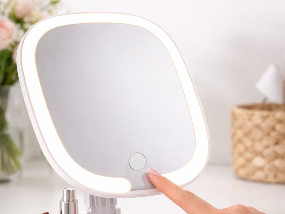 Say goodbye to tangled cords. This mirror features a built-in rechargeable battery powered by a convenient USB-C cable. Once fully charged, you can use it wirelessly anywhere. Its adjustable height and angle guarantee maximum comfort, while the built-in cosmetic organizer keeps your essentials within reach.
