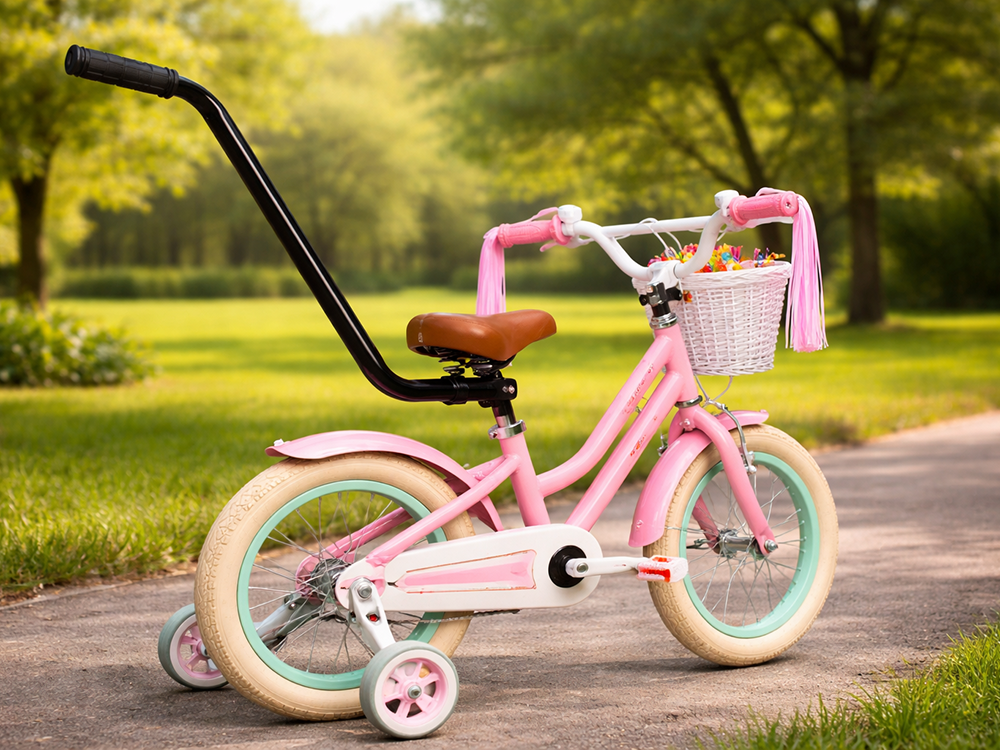 The metal push handle for kids' bikes is a practical and safe solution that supports the child during their first attempts at independent riding. It is mounted under the saddle, providing parents with full control over the bike.