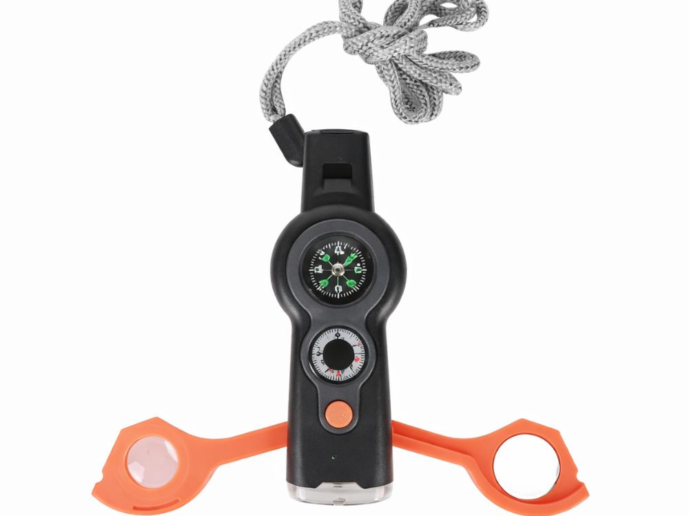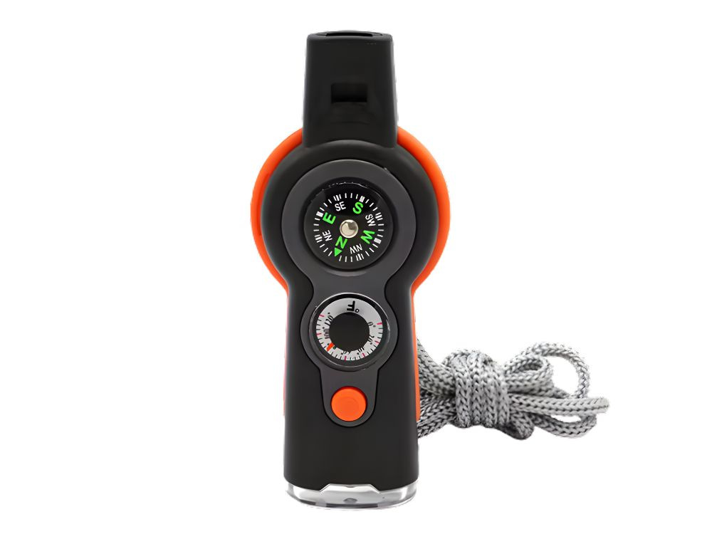 Discover the ultimate 7-in-1 multifunctional survival whistle with a compass, LED flashlight, and thermometer. Perfect for hiking, camping, and outdoor safety.