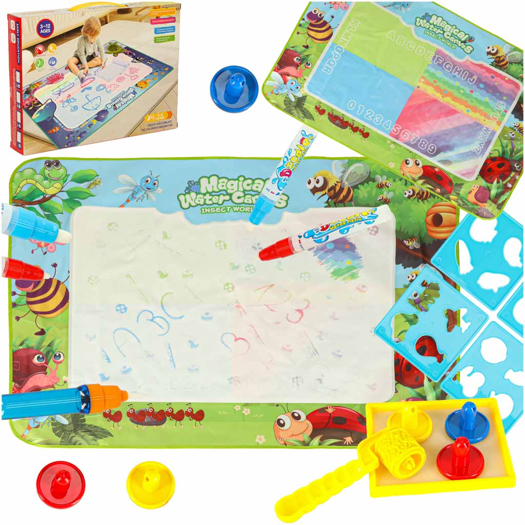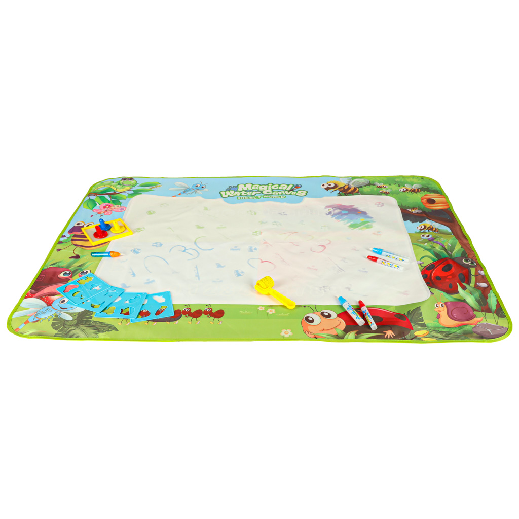 Large Water Drawing Mat with Pens Stamps and Stencils 120x90cm Meadow Theme