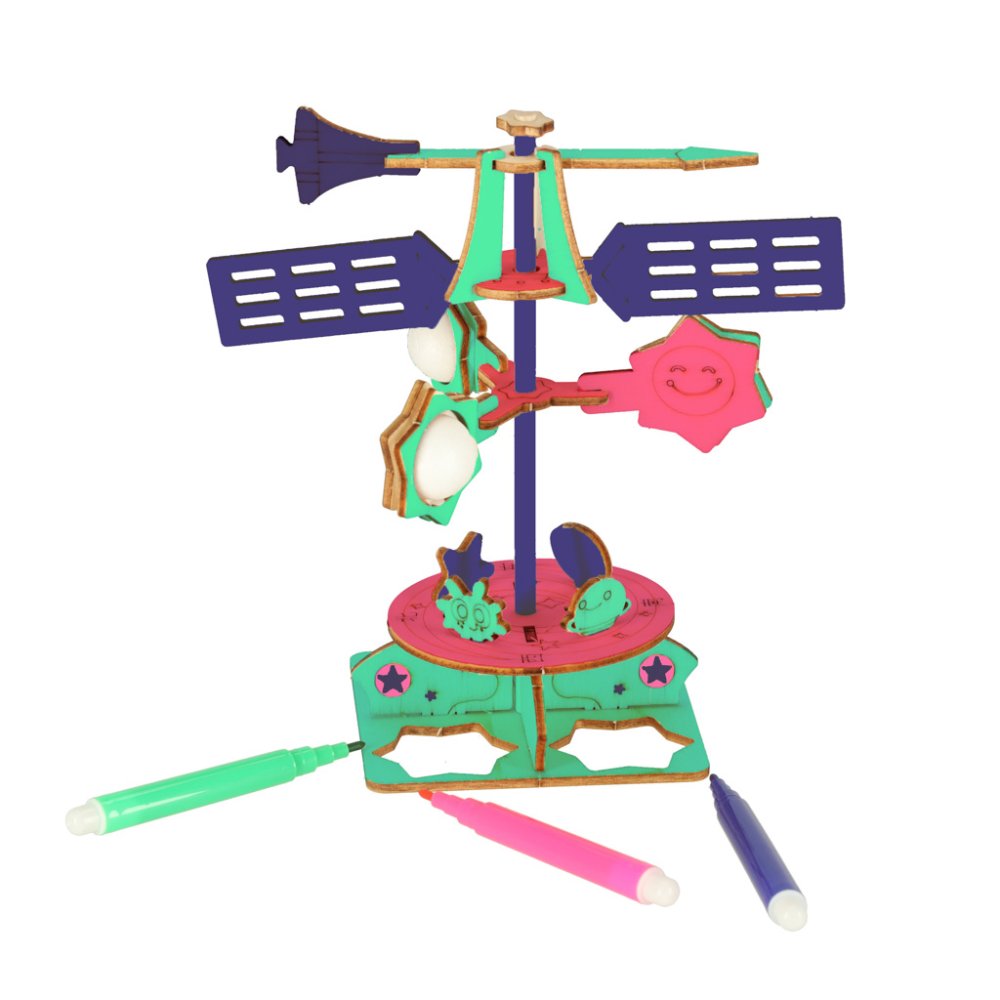An educational science kit for kids that allows them to independently assemble and decorate a wooden 3D weathervane model. A great way to introduce children to the basics of physics and meteorology while developing their creativity and manual skills.