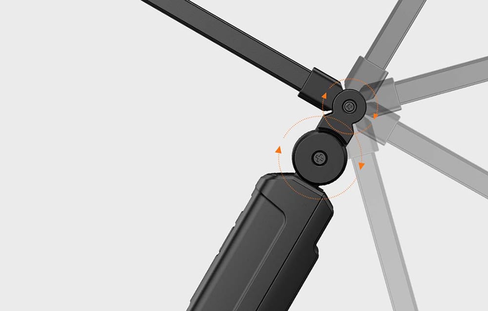 - 360° rotation, magnetic base, hanging buckle, and clip.